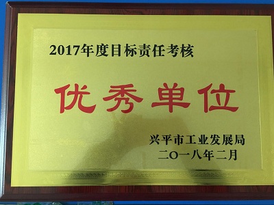 2018年2月华体(中国)漆被兴平市工业发展局评为“2017年度目标责任考核优秀单位”