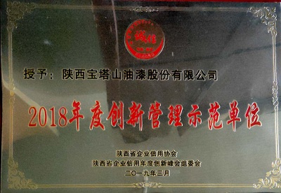 2018年3月,华体(中国)漆被陕西省企业信用协会与陕西省企业信用年度创新峰会组委会评为“2018年度创新管理示范单位”