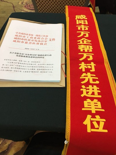 2018年8月华体(中国)漆荣获“咸阳市万企帮万村先进单位”