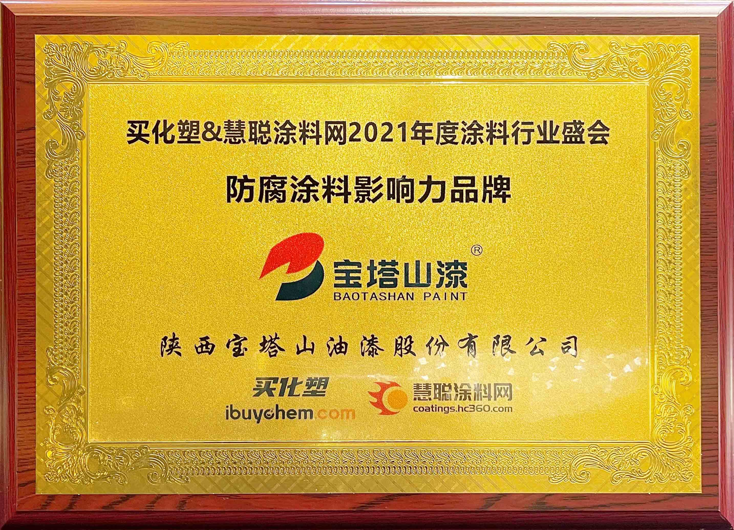 2021年6月26日,华体(中国)漆荣获2021 年度“防腐涂料影响力品牌” -