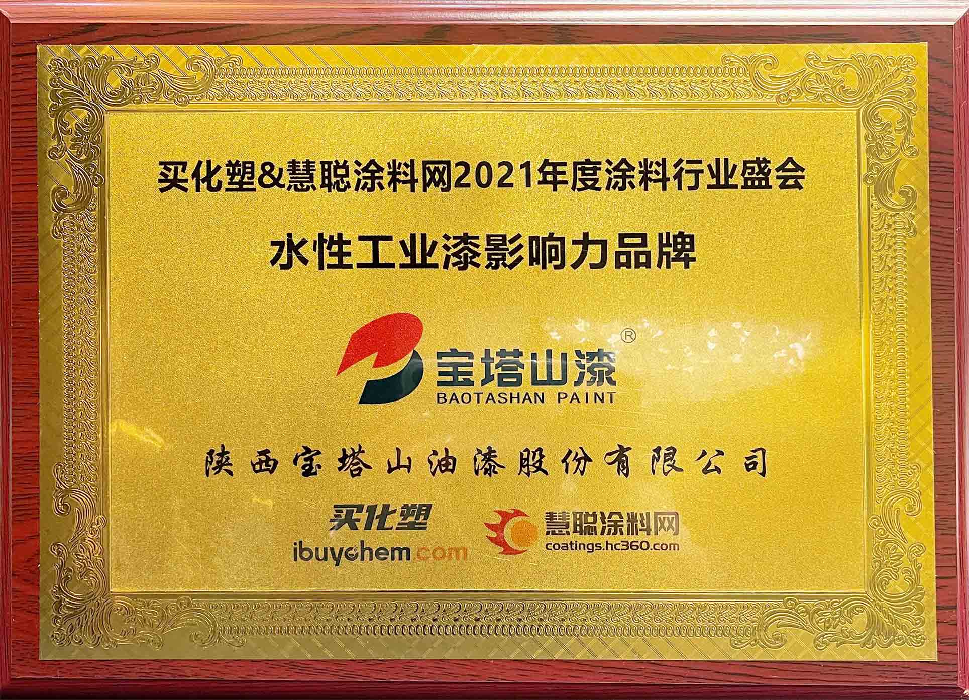 2021年6月26日,华体(中国)漆荣获2021 年度“水性工业漆影响力品牌 ” -