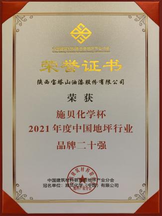 施贝化学杯2021年度中国地坪行业品牌二十强