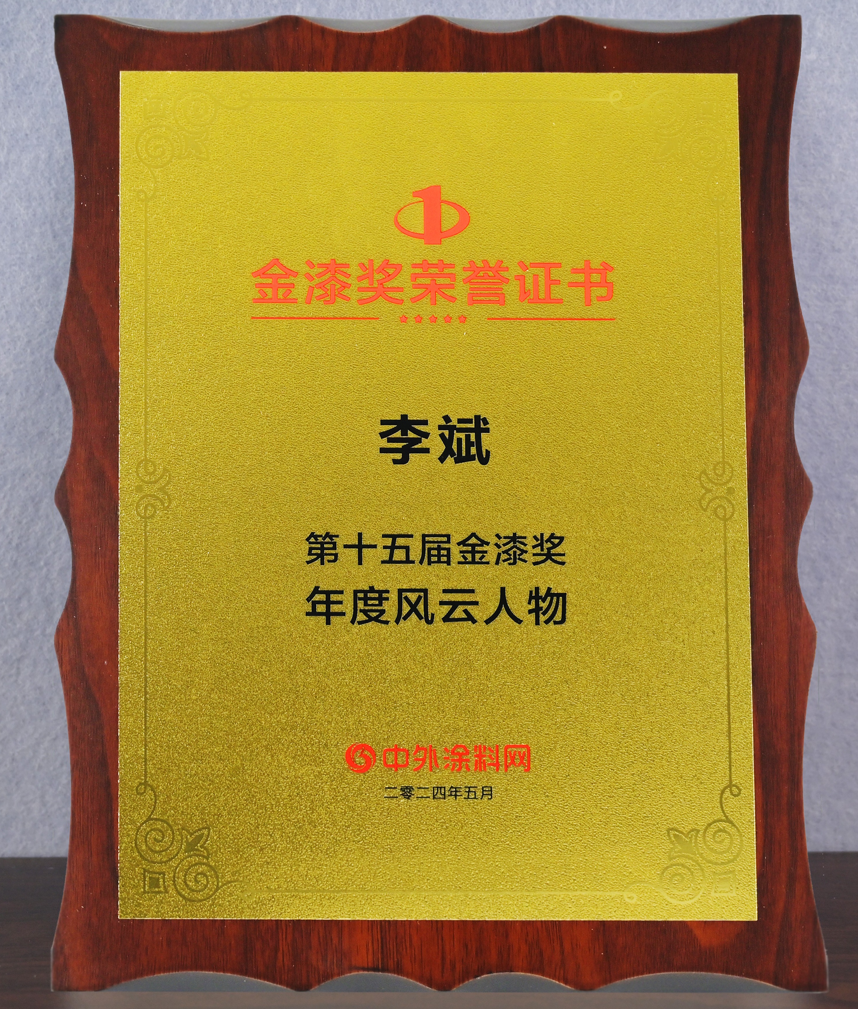 2024年5月,华体(中国)漆李斌同志在中外涂料网第十五届金漆奖评选活动中被评为“年度风云人物”。 -